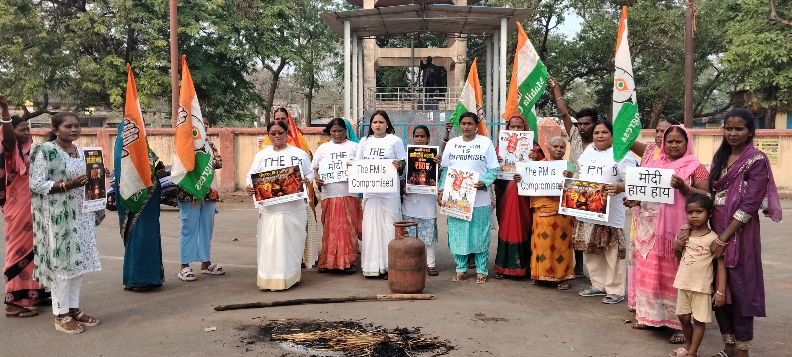 भूली। भूली बी ब्लॉक आंबेडकर चौक में धनबाद जिला महिला कांग्रेस कमिटी की जिलाध्यक्ष सीता राणा के नेतृत्व में गैस सिलेंडर में मूल्य वृद्धि के विरोध में प्रदर्शन किया गया। महिला कांग्रेस ने गैस सिलेंडर के घरेलू सिलेंडर पर साठ रूपया और व्यवसायिक सिलेंडर पर 115 रूपया बढ़ोतरी के विरोध में प्रधानमंत्री नरेंद्र मोदी और पेट्रोलियम मंत्री हरदीप सिंह पुरी का पुतला जलाया। इस दौरान महिला कांग्रेस ने पेट्रोलियम मंत्री हरदीप सिंह पुरी का इस्तीफा मांगने और प्रधानमंत्री की भूमिका संदिग्ध है जैसा नारा लगाया।