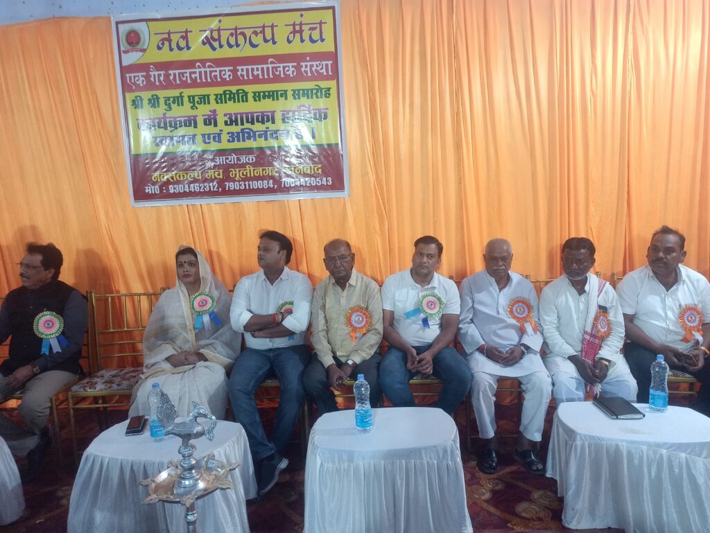 नव संकल्प मंच ने पूजा समितियों को सम्मान दें कर संदेश दिया कि आप सभी सम्मान के पात्र हैं जिस मेहनत से श्रद्धालु भक्त गणों के लिए कृतसंकल्पित भाव से सेवा किए इसके हकदार हैं।