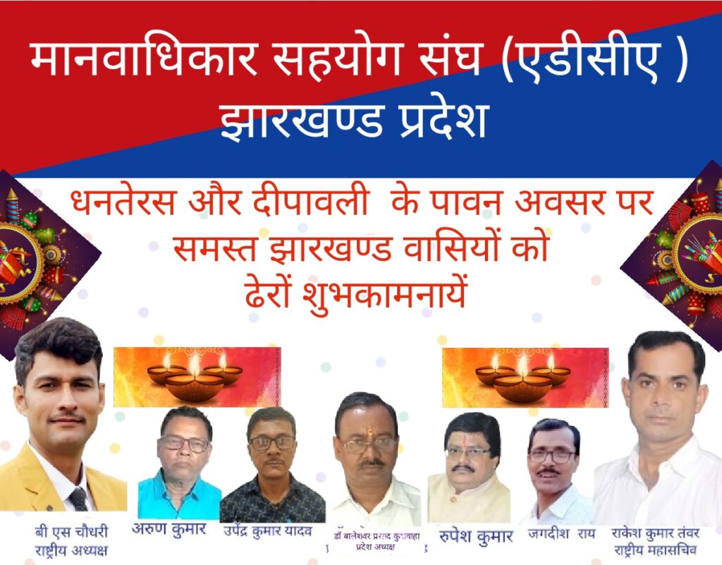 समस्त झारखण्ड वासियों को धनतेरस और दीपावली की ढेरों शुभकामनायें