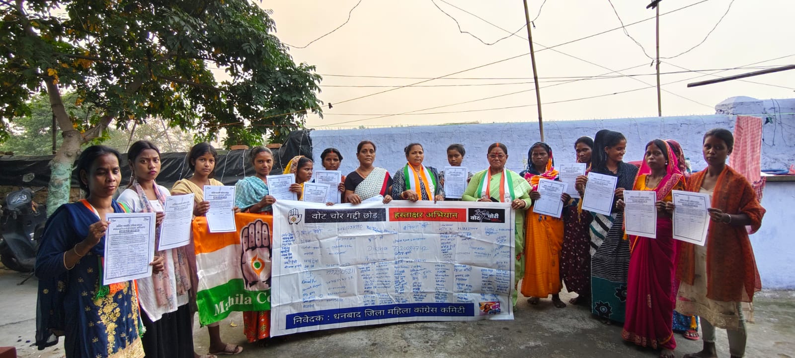 धनबाद। धनबाद जिला महिला कांग्रेस कमिटी द्वारा धनबाद विधानसभा के धनसार, नई दिल्ली के साथ नगर निगम के वार्ड 33 क्षेत्र में वोट चोरी के खिलाफ हस्ताक्षर अभियान चलाया। धनबाद जिला महिला कांग्रेस कमिटी की जिलाध्यक्ष सीता राणा का कविता धीवर के नेतृत्व में जोरदार स्वागत किया गया। फूलमाला पहनाकर भव्य तरीके से सीता राणा पुनः जिलाध्यक्ष बनने पर खुशी व्यक्त किया गया। साथ ही वोट चोर गद्दी छोड़ कार्यक्रम के तहत हस्ताक्षर अभियान चलाया गया। कविता धीवर ने कहा कि सीता राणा जी पुनः जिलाध्यक्ष बनी और सीता राणा जी के नेतृत्व में महिला कांग्रेस मजबूती से कार्य करेगी।