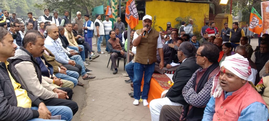 धनबाद। धनबाद विधायक राज सिन्हा के नेतृत्व में धनबाद नगर निगम पर अनिश्चित कालीन धरना दिया गया। विधायक राज सिंहा ने अपने संबोधन में कहा कि वर्षों से जन समस्याओं की अनदेखी बार बार करने के बाद अल्टीमेटन दिए जाने के बाद धनबाद नगर निगम के द्वारा 55 वार्डो में जन समस्याओं का समाधान न होना दुर्भाग्यपूर्ण है। झारखंड प्रदेश की सरकार कटघरे में है जो जनता के अधिकार और सुविधाओं को कुचलने का काम कर रही है। हेमंत सोरेन की सरकार आज प्रदेश की सभी नगर निगम में शासन चला रही है। हेमंत सोरेन की सरकार नगर निकाय चुनाव न कराकर जनता के अधिकारों का हनन कर रही है। धनबाद विधायक ने कहा 48 घंटे का अल्टीमेटन दिया था। अगर सकारात्मक पहल नहीं हुई तो नगर निगम के अंदर सीढ़ी पर कार्यकर्ता गणों के साथ बैठकर धरना देने का काम करेंगे।