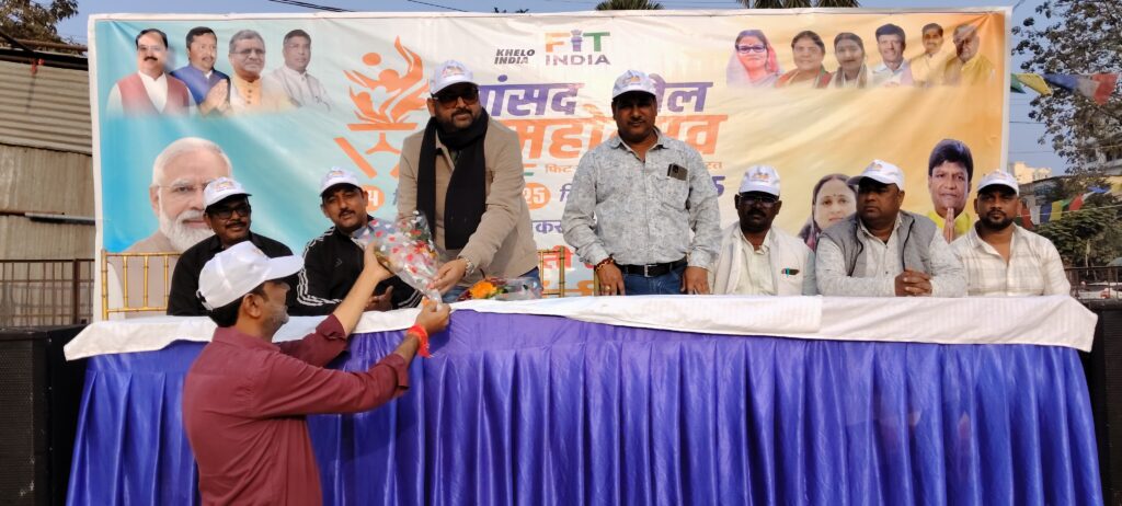 धनबाद। धनबाद के हीरापुर पार्क मार्केट स्थित वॉलीबॉल मैदान में सांसद खेल महोत्सव के दूसरे दिन भी वॉलीबॉल प्रतियोगिता में खिलाड़ियों ने अपने प्रतिभा का प्रदर्शन किया। कार्यक्रम में बतौर अतिथि समाजसेवी मुकेश लाल यादव का स्वागत किया गया। पुष्प गुच्छ और अंगवस्त्र भेंट कर सम्मानित किया गया। साथ ही विशिष्ट अतिथि सांसद प्रतिनिधि कैलाश गुप्ता, मनोज सिंह, विजय शर्मा, मंतोष कुमार, सुनील गुप्ता, शशि प्रकाश, रवि शर्मा, रमेश शर्मा को अंगवस्त्र ओढ़ाकर सम्मानित किया गया।