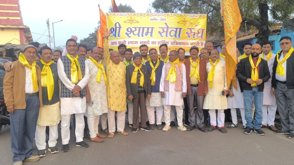 कतरास। श्याम सेवा संघ द्वारा चतुर्थ श्री श्याम सुमिरण महोत्सव का चतुर्थ वार्षिक उत्सव धूमधाम से मनाया गया। श्री श्याम सुमिरण महोत्सव के अवसर पर कतरास पंचगढ़ी स्थित सूर्य मंदिर प्रांगण से भव्य निशान यात्रा निकाली गई। जिसमें श्री श्याम भक्त बड़े उत्साह से भाग लिया। युवकों के हाथों में धर्म ध्वजा का निशान था और जय श्री राम जय हनुमान के नारों से वातावरण गुंजायमान होता रहा। निशान यात्रा नगर भ्रमण करते हुए कतरास स्थित राजस्थानी धर्मशाला पहुंचा।